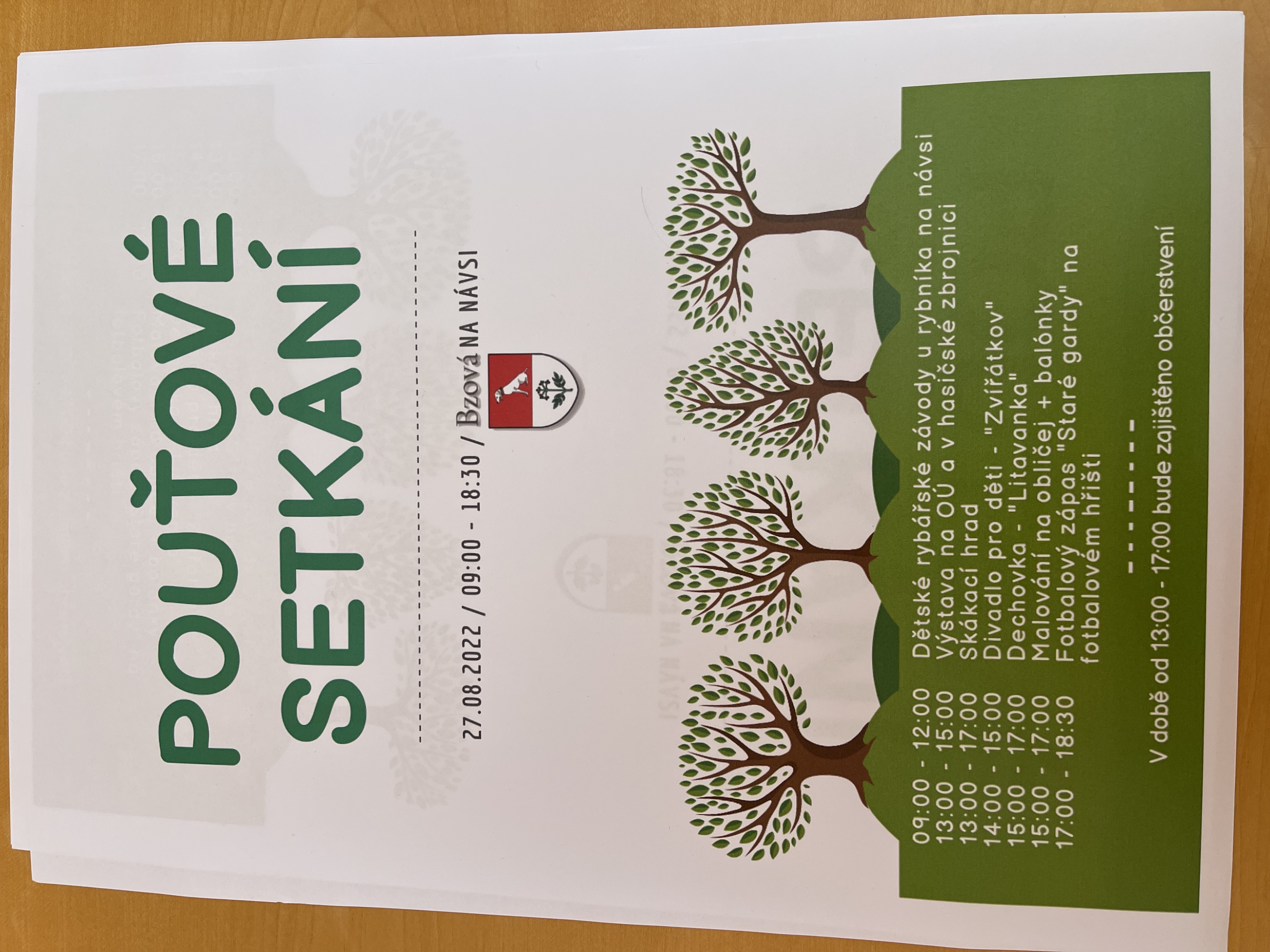 V příloze najdete pozvánku místních spolků na pouťový víkend. Těší se na vás Florbalový oddíl, SDH Bzová a Sdružení přátel sportovního rybolovu.